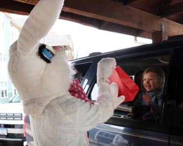 The Timbers of Shorewood Senior Living hosted the “Hippity-Hop Easter Bunny Lane Drive Up” on Saturday, April 4. Due to a week of heavy rainfall the traditional outdoor egg hunt was converted to a drive-up event which welcomed approximately 250 cars to the celebration. The Easter Bunny distributed 13,000 candy-filled Easter eggs directly to children through their car windows.